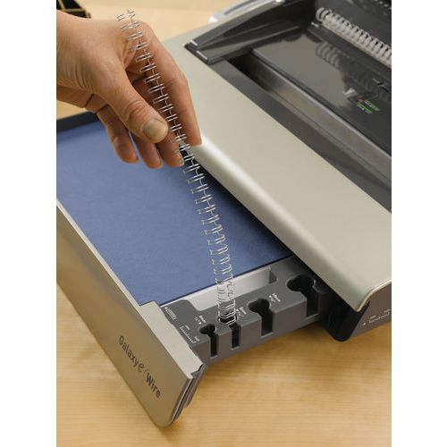 | Productnaam | Ponsbindmachine Galaxy-E Wire. Elektrisch via metalen ringen, Ingebonden: Metalen ringen |