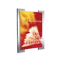 Posterhouder is voorzien van een stijlvol frame, in de vorm van 2 aluminium panelen. Door het postervak te openen kan de inhoud snel en eenvoudig verwisseld worden.
