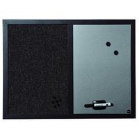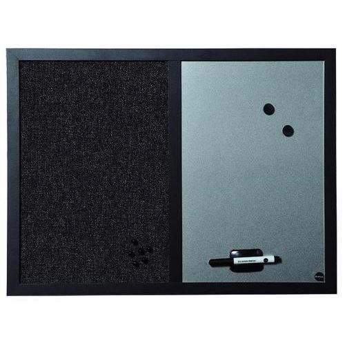 Twee nieuwe stijlvolle combinaties van viltbord + schrijfbord die in elke omgeving passen. Elegant voor aan de muur en een frisse touch in het kantoor. Het materiaal is nieuw ontwikkeld en ziet er kwalitatief uit voor een mooie prijs. Ideaal voor veelvuldig dagelijks gebruik. Inclusief ophangset, 6 punaises, 2 magneten en dry erase-stift. Dikte van het frame: 22 mm. Het prikbord is verkrijgbaar in twee versies, beide met een zwart frame: 1. Donkergrijs vilt in combinatie met zilverkleurig dry erase-oppervlak, net als een whiteboard maar dan in een andere kleur. Gebruik dry erase-stift of gewone WB-stift. 2. Lichtgrijs vilt in combinatie met zilverkleurig dry erase-oppervlak, net als een whiteboard maar dan in een andere kleur. Gebruik dry erase-stift of gewone WB-stift.