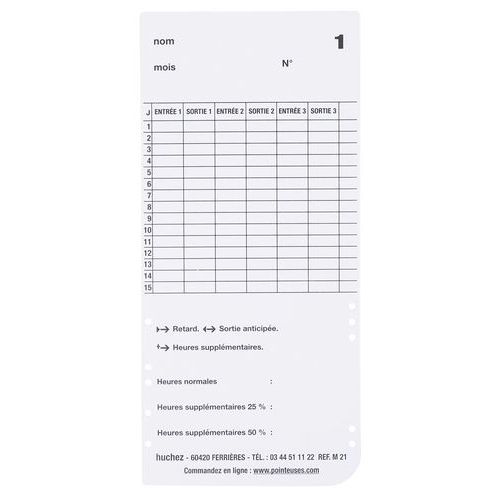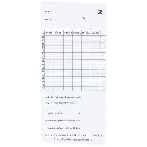 | Productnaam | Tijdkaart ER1600 en ER2700, Type: Prikkaart, Voor model: Prikklok ER 1500/2500 |