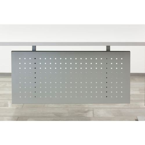 Privacyscherm geperforeerd onder bureau zilver. Zichtpaneel. Ovengeëmailleerd geperforeerd plaatstaal.