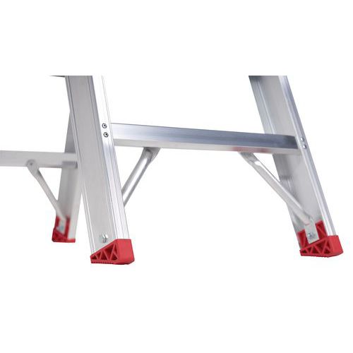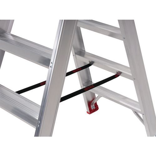 - Professionele dubbelzijdige trapladder van extreem licht aluminium met treden met kruisprofiel.