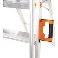Professionele trap van aluminium. Multifunctioneel gereedschapsbord. Comfortabel en veilig dankzij de leuning. Verstevigde profielen van aluminium. Platform met vergrendelingssysteem. Antisliptreden. Eenvoudig te vervoeren en op te bergen.