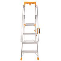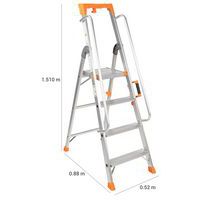 Professionele trap van aluminium. Multifunctioneel gereedschapsbord. Comfortabel en veilig dankzij de leuning. Verstevigde profielen van aluminium. Platform met vergrendelingssysteem. Antisliptreden. Eenvoudig te vervoeren en op te bergen. Max. belasting (kg) : 150 kg Klantgarantie : 10 jaar