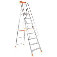 Professionele trap van aluminium. Multifunctioneel gereedschapsbord. Comfortabel en veilig dankzij de leuning. Verstevigde profielen van aluminium. Platform met vergrendelingssysteem. Antisliptreden. Eenvoudig te vervoeren en op te bergen. Max. belasting (kg) : 150 kg Klantgarantie : 10 jaar
