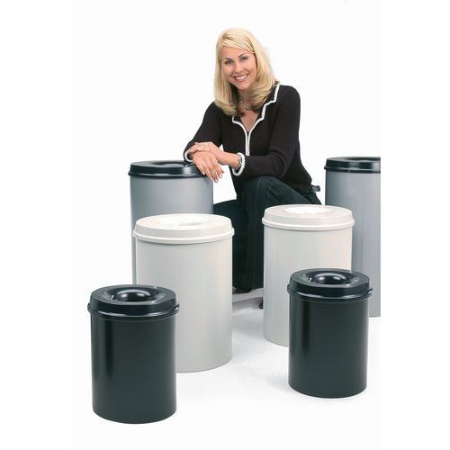 - Metalen afvalbak uitgerust met een vlamdover.