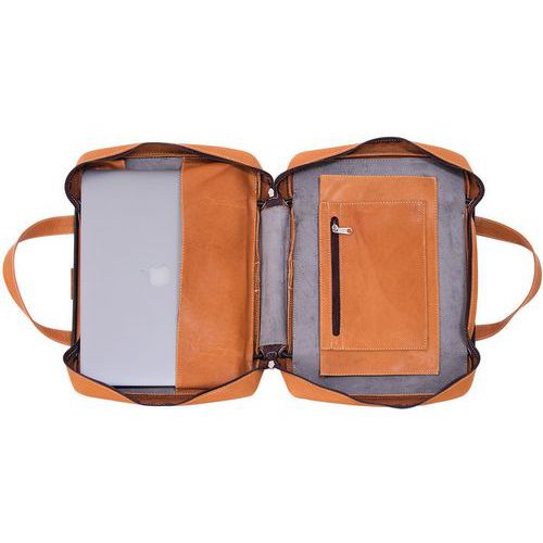 R-Go Viva laptoptas, Materiaal: Leer, Geschikt voor PC: 1 , Kleur: Bruin, Totale lengte: 450 mm