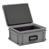 Gereedschapskoffer met klep en 2 versterkte scharnieren. Te vergrendelen met 2 kliksluitingen met veer. Stapelbaar, zonder risico van wegglijden. Perfect te onderhouden door de gladde wanden. Kunststof koffer met draagbeugel aan de lange zijde. Etikethouders op 1 grote en 1 kleine zijde. Gemaakt in de EU