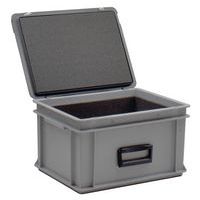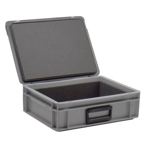 Gereedschapskoffer met klep en 2 versterkte scharnieren. Te vergrendelen met 2 kliksluitingen met veer. Stapelbaar, zonder risico van wegglijden. Perfect te onderhouden door de gladde wanden. Kunststof koffer met draagbeugel aan de lange zijde. Etikethouders op 1 grote en 1 kleine zijde.
