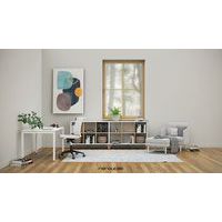 Recht bureau in hoogte verstelbaar ter hoogte van de poten. Melamineblad van 25 mm en randen van ABS van 2 mm. 2 Buisvormige metalen dwarsliggers voor bevestiging van 40 x 20 mm. Rechte poten met metalen structuur 40 x 40 mm en kunststof vijzels voor nivellering. Het blad heeft een kabeldoorgang met afsluiter voor het organiseren van de kabels.