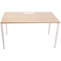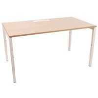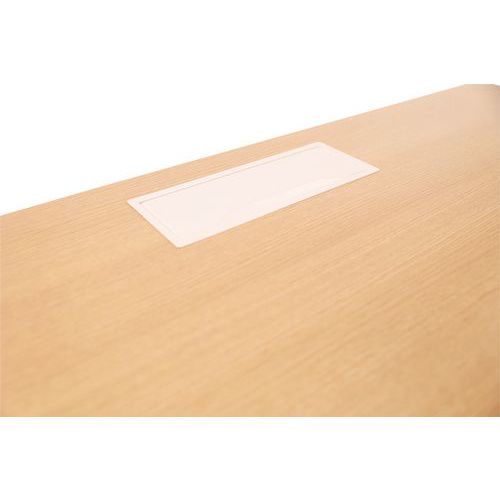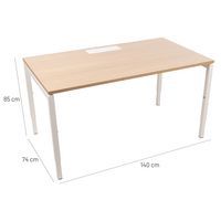 Recht bureau in hoogte verstelbaar ter hoogte van de poten. Melamineblad van 25 mm en randen van ABS van 2 mm. 2 Buisvormige metalen dwarsliggers voor bevestiging van 40 x 20 mm. Rechte poten met metalen structuur 40 x 40 mm en kunststof vijzels voor nivellering. Het blad heeft een kabeldoorgang met afsluiter voor het organiseren van de kabels.
