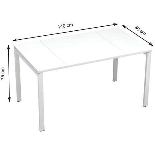 Recht bureau 140x80 cm met blad Décor Easy Office. Metalen structuur voor een perfecte stevigheid. Telescopische metalen balken. Randen van PVC, dikte 2 mm. Metalen voet met doorsnede 50 x 30 mm. Afgewerkt met witte epoxylak. Gepersonaliseerd en snel geïnstalleerd.
