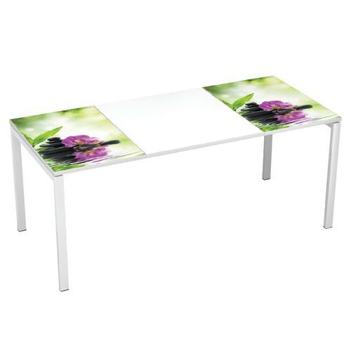 Metalen structuur voor een perfecte stevigheid Telescopische metalen balken Randen van PVC, dikte 2 mm Metalen voet met doorsnede 50 x 30 mm Afgewerkt met witte epoxylak Gepersonaliseerd en snel geïnstalleerd