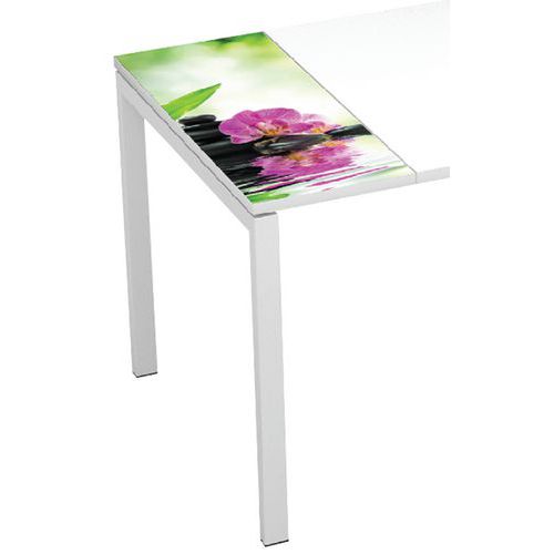 Metalen structuur voor een perfecte stevigheid Telescopische metalen balken Randen van PVC, dikte 2 mm Metalen voet met doorsnede 50 x 30 mm Afgewerkt met witte epoxylak Gepersonaliseerd en snel geïnstalleerd