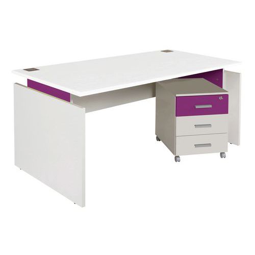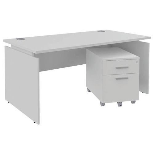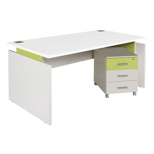 Recht bureau Linéo wit + verrijdbaar ladeblok