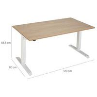 Zeer bestendig gemelamineerd blad, randen van ABS met een dikte van 2 mm. Uitschuifbare balk onder het blad. Onderstel 2 kolommen geëpoxeerd staal, kleur wit In hoogte verstelbaar blad van 685 tot 1200 mm met elektrische ondersteuning. Regelsnelheid: 25 mm/seconde Voltage: 100-240 VAC, 50/50Hz (energieverbruik stand-by: 0,15 Watt) Inschakeling door enkele aansluiting op standaard 220V-aansluiting Overeenkomstig Richtlijn 2006/42/EF van het Europees Parlement en de Raad van 17 mei 2006 betreffende machines en de wijzigingen van Richtlijn 95/16/EF. Oréa bureaus worden beschouwd als machines en mogen niet worden gebruikt voordat ze zijn gemonteerd en geïnstalleerd overeenkomstig de aanwijzingen in de montagehandleiding. Voorgeboord Ø 80 mm voor het plaatsen van ronde of vierkante afsluiter zonder speciaal gereedschap, afzonderlijk verkrijgbaar.