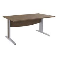 Dikte blad 25 mm, voorzien van een afsluiter voor de kabeldoorgangen. Metalen poten in L-vorm met kabeldoorgang onder afneembare houten latjes. Gebogen frontpaneel van spaanplaat met een dikte van 16 mm voor de doorvoer van elektrische kabels. L-poten voorzien van steldoppen. Monteerklaar geleverd met handleiding.