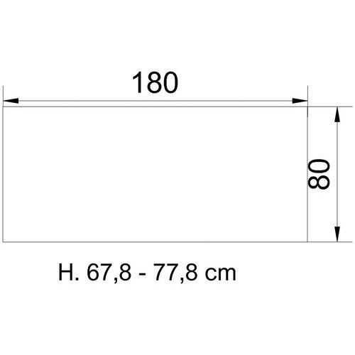 Verstelbare poten van 67,5 cm tot 77,5 cm.