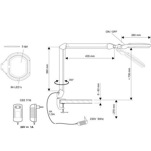 | Productnaam | Rechthoekige led-loeplamp 1250 lm, Lichtstroom: 1250 lm, Type lamp: Led lamp of module, Vergroting: 1.75x |