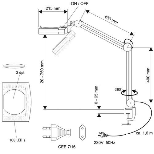 | Productnaam | Rechthoekige led-loeplamp 470 lm, Lichtstroom: 470 lm, Type lamp: Led lamp of module, Vergroting: 1.75x |