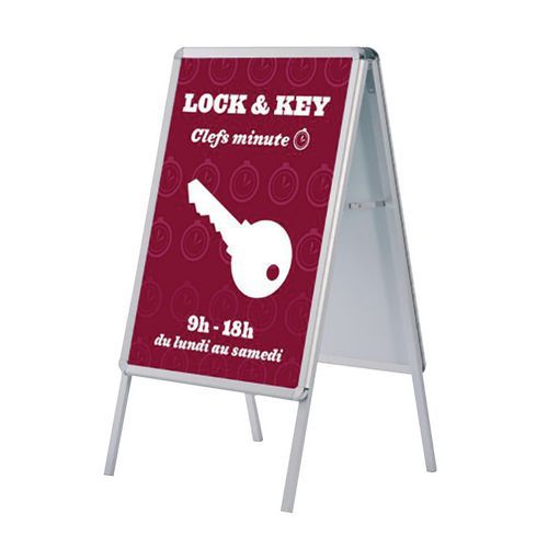 | Productnaam | Reclamebord, Aantal vakken/kolom: 1, Kleur: Grijs, Voor formaat: 420 x 594 mm (A2), Hoogte: 94 cm |