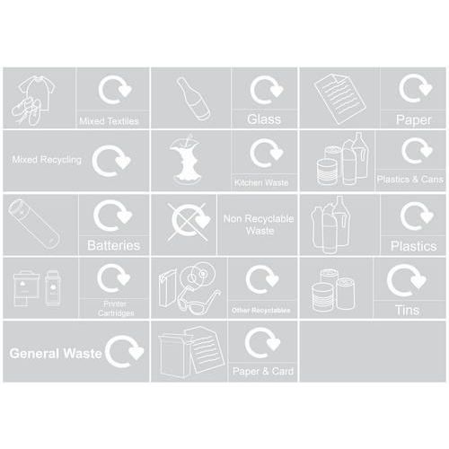 | Productnaam | Recyclingstickervel voor plastic recyclingbakken |