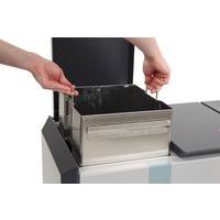 - Als het deksel geopend wordt kan de lichtgewicht aluminium binnenemmer gemakkelijk geleegd worden.