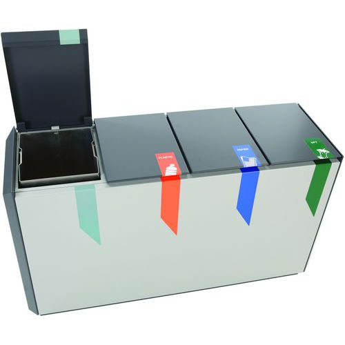 | Productnaam | RecycloStar 4, Totale inhoud: 220 L, Opening: Gleuf, Materiaal: Metaal |