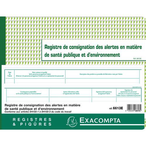 | Productnaam | Register alarm volksgezondheid en milieu 24x32cm Exacompta, Model: Register voor waarschuwingen |