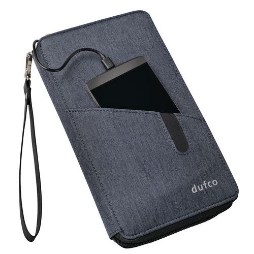 Uitgerust met verschillende vakken (pasjes, paspoorten, smartphone (6)...), een ritssluiting en een afneembare draagband.