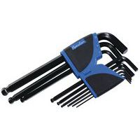| Productnaam | Rek met 9 binnenzeskantsleutels met bolle kop, Schroef uitsparing: Binnenzeskant, Aantal sleutels: 9 |
