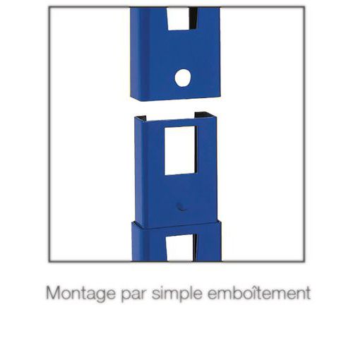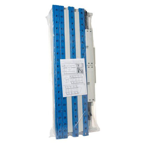 Staanders in 12,5/10e staal met blauwe epoxy, 40 x 20 x 10 mm doorsnede, met 36 x 80 mm metalen voet geperforeerd tot een diameter van 10 mm voor eventuele bevestiging aan de vloer.
