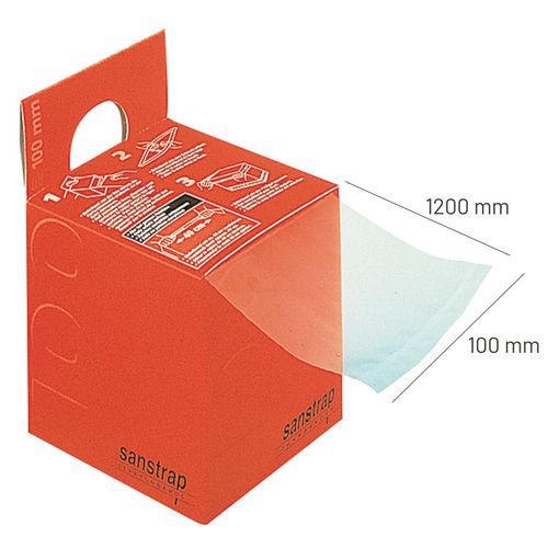 | Productnaam | Rekbaar lint Sanstrap®, Lengte: 1200 mm, Breedte: 100 mm, Dragerdikte: 40 µm, Verpakkingswens: Omwikkelen |