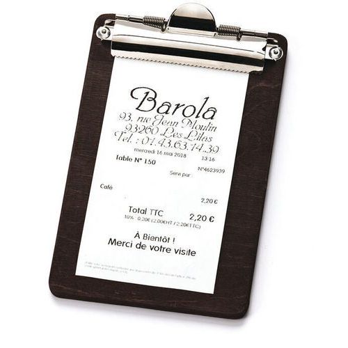 | Productnaam | Rekeningmap van hout met metalen klem, Kleur: Donkerbruin, Hoogte: 0.6 cm, Breedte: 115 mm, Lengte: 185 mm |