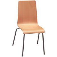 - Compleet meubilair bestaande uit 4 stoelen met een beuken zitting en zwarte poten en een tafel met beuken blad en lichtgrijze poten.