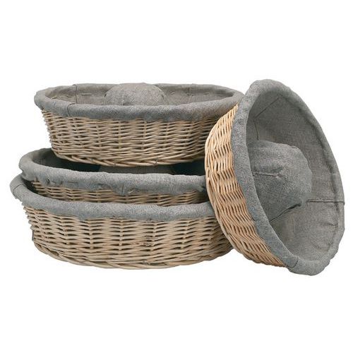 Rijsmand riet met ring, met linnen bekleed Rijsmand riet met ring, met linnen bekleed