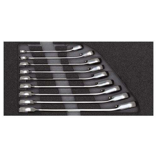 | Productnaam | Ringratel-steeksleutelset 1/3 module 9 delig R22150002, Type nr.: 3301701, Aantal stuks: 9, Gewicht: 1430 g |