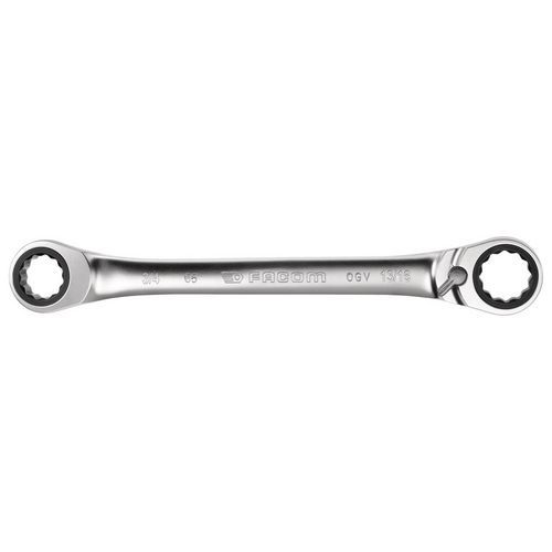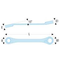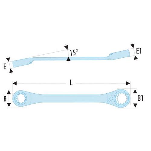 - Ringratelsleutels, 15° gebogen: door de uitsparing onder de steel is er meer plaats voor de vingers of een obstakel.