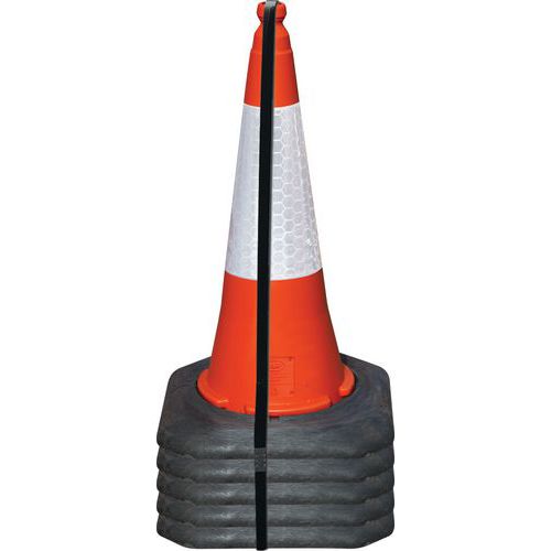 Set van vijf verkeerskegels voor intensief gebruik binnen of buiten. Gemaakt van materialen die bestand zijn tegen slechte weersomstandigheden, schokken en slijtage, voor maximale duurzaamheid. Hun brede en stabiele basis garandeert een uitstekende stevigheid, zelfs bij sterke wind of het veelvuldig voorbij rijden van voertuigen. Ideaal voor het afbakenen van werkgebieden, het beveiligen van een gebied of het wijzen op tijdelijke obstakels. Deze kegels zijn eenvoudig te stapelen en te vervoeren, en daardoor perfect voor snel en praktisch gebruik.