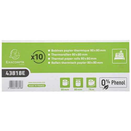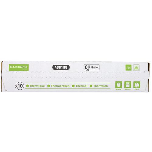 | Productnaam | Rol kassabon 1-laags thermisch zonder fenol, Type: Rollen kassabonnen, Gramsgewicht: 55 g/m² |