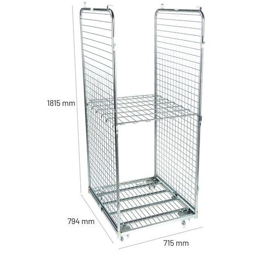 - Zeer robuuste rolcontainer met 2 zijden en stalen basis.