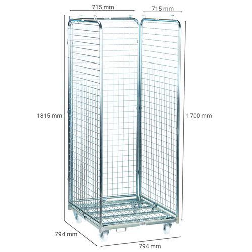 Rolcontainer, Max. belasting: 400 kg, Totale hoogte: 1815 mm, Totale lengte: 794 mm, Aantal zijden: 3