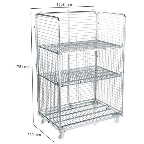 | Productnaam | Rolcontainer maxi, 3 zijden, Max. belasting: 600 kg, Totale hoogte: 1751 mm, Totale lengte: 1208 mm |