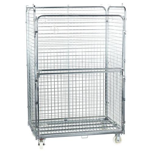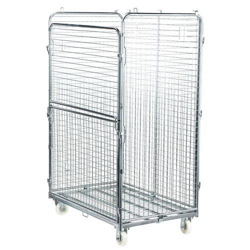 - Rolcontainer maxi van staal met 3 zijden met rasterwerk en opening aan voorzijde.