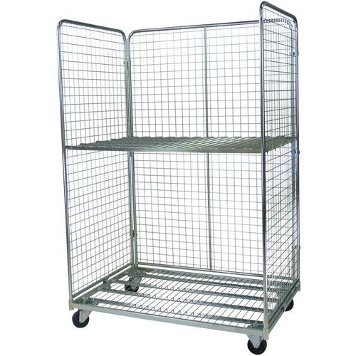 | Productnaam | Rolcontainer Maxi, Max. belasting: 400 kg, Totale hoogte: 1800 mm, Totale lengte: 1200 mm, Aantal zijden: 3 |