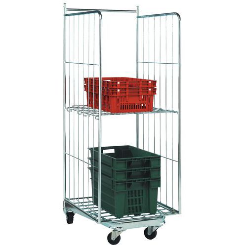 | Productnaam | Rolcontainer met 2 zijkanten, nestbaar, Max. belasting: 400 kg, Totale hoogte: 1920 mm, Totale lengte: 710 mm |