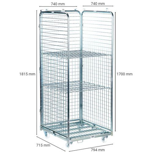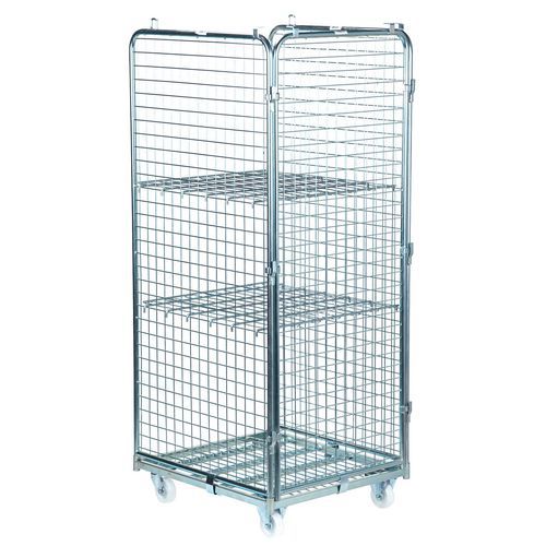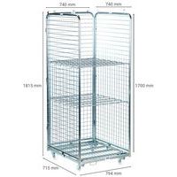Rolcontainer staal, 3 zijden en 2 legborden, Max. belasting: 400 kg, Totale hoogte: 1815 mm