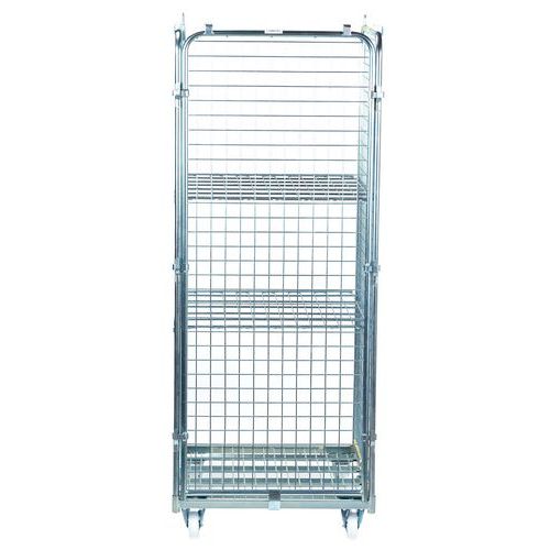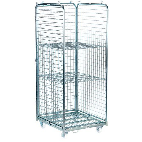 Rolcontainer staal, 3 zijden en 2 legborden - Draagvermogen 400 kg - Manutan Expert
