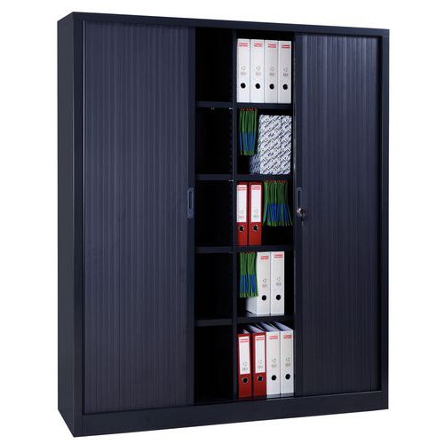 Kies voor een extra brede kast met soepele roldeuren en magnetische sluitlamellen