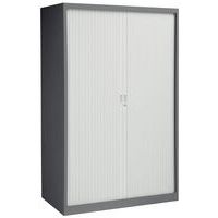 Stevige materiaalkast in gelast plaatstaal met 4 legborden. Bespaar ruimte dankzij de PVC roldeuren (klasse M1). Geschikt voor uw zware producten door verstevigde sokkel. Verstel uw legborden eenvoudig per 25 mm in hoogte. Af te sluiten met ingebouwd slot. Veiligheidstips: - Plaats het meubel op een vlak oppervlak - Bevestig het aan de muur of een scheidingswand met een speciale bevestiging - Let erop dat u de aanbevolen maximale belasting niet overschrijdt en zorg voor een goede verdeling Toon meer Toon minder